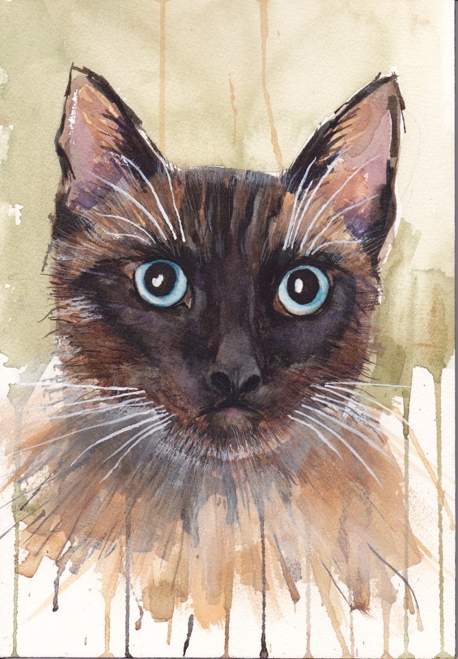“Alfie” Seal Point Siamese, Watercolour on paper